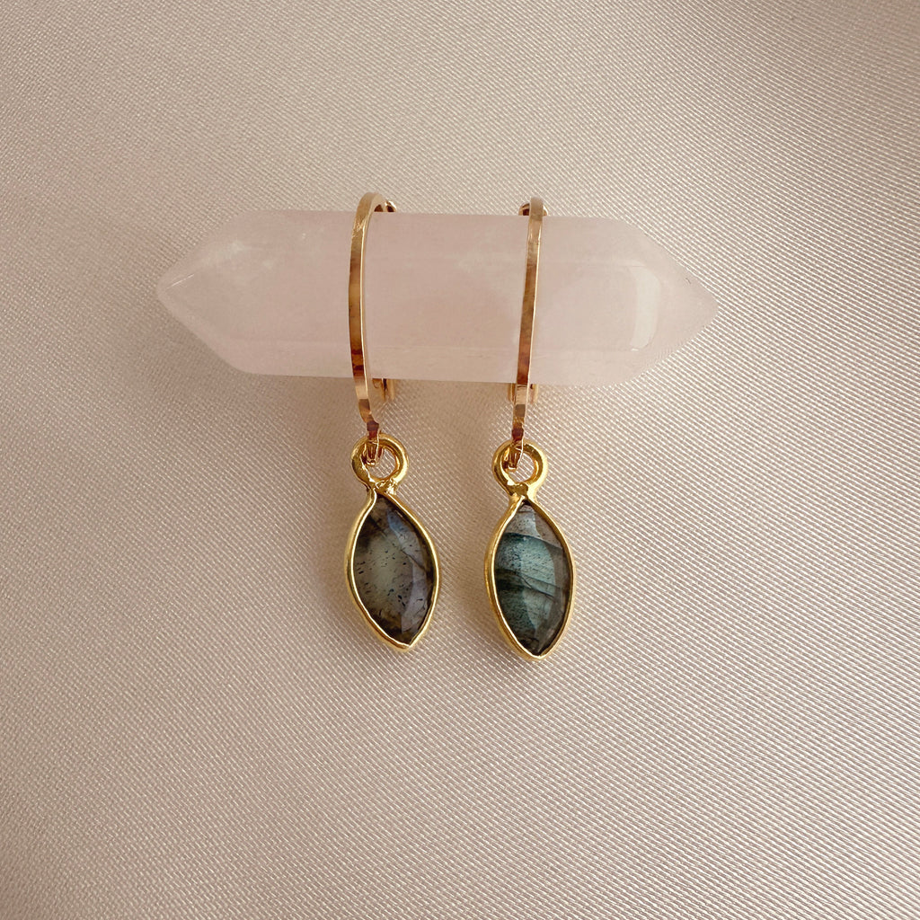 Mini créoles ornées d’une pierre de gemme véritable en forme d’amande.