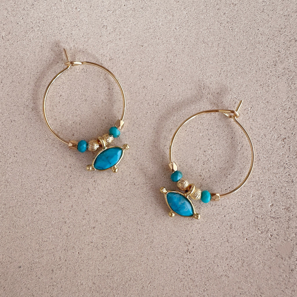 Boucles bohèmes perlées avec pierres et perles en turquoise howlite.