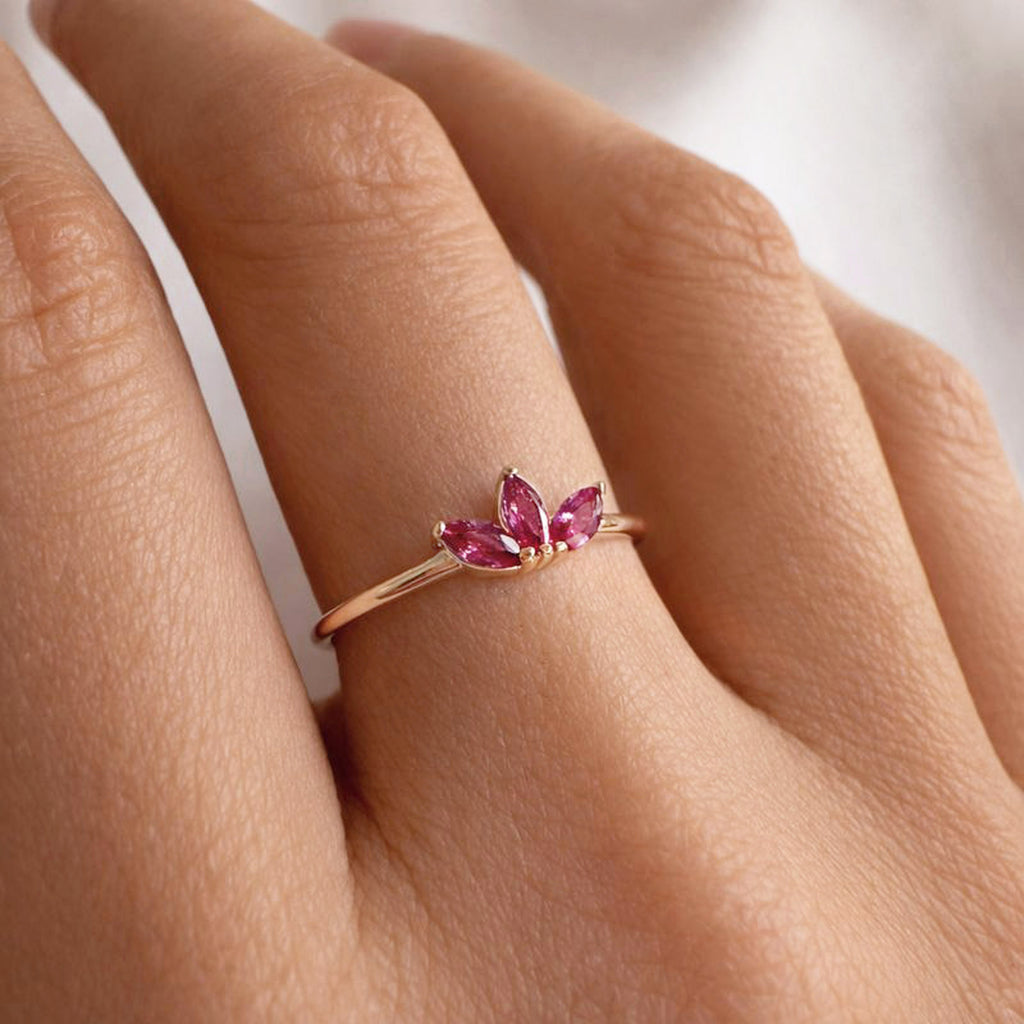 Bague élégante ornée de 3 cristaux de zirconium de couleur rose fuchsia.
