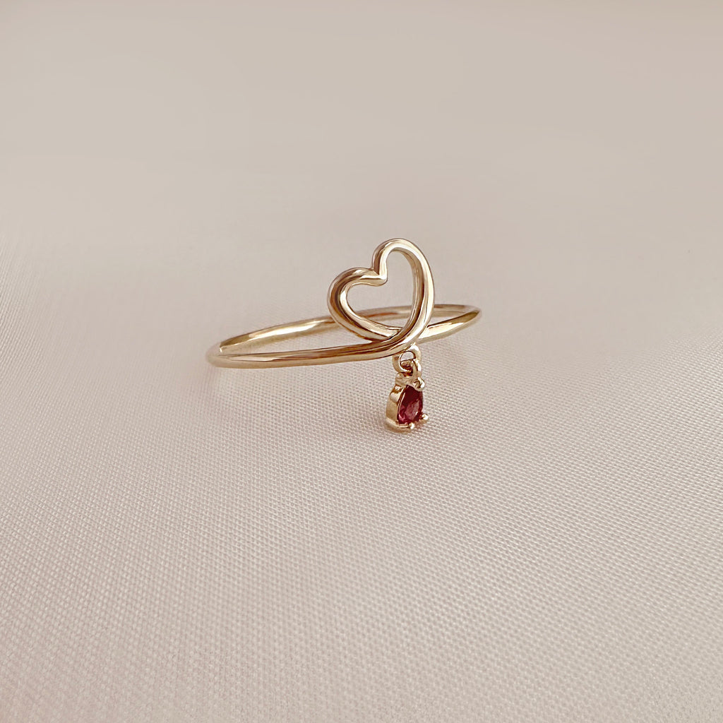 Lovely romantic ring featuring a heart outline adorned with a pink cubic zirconia charm.