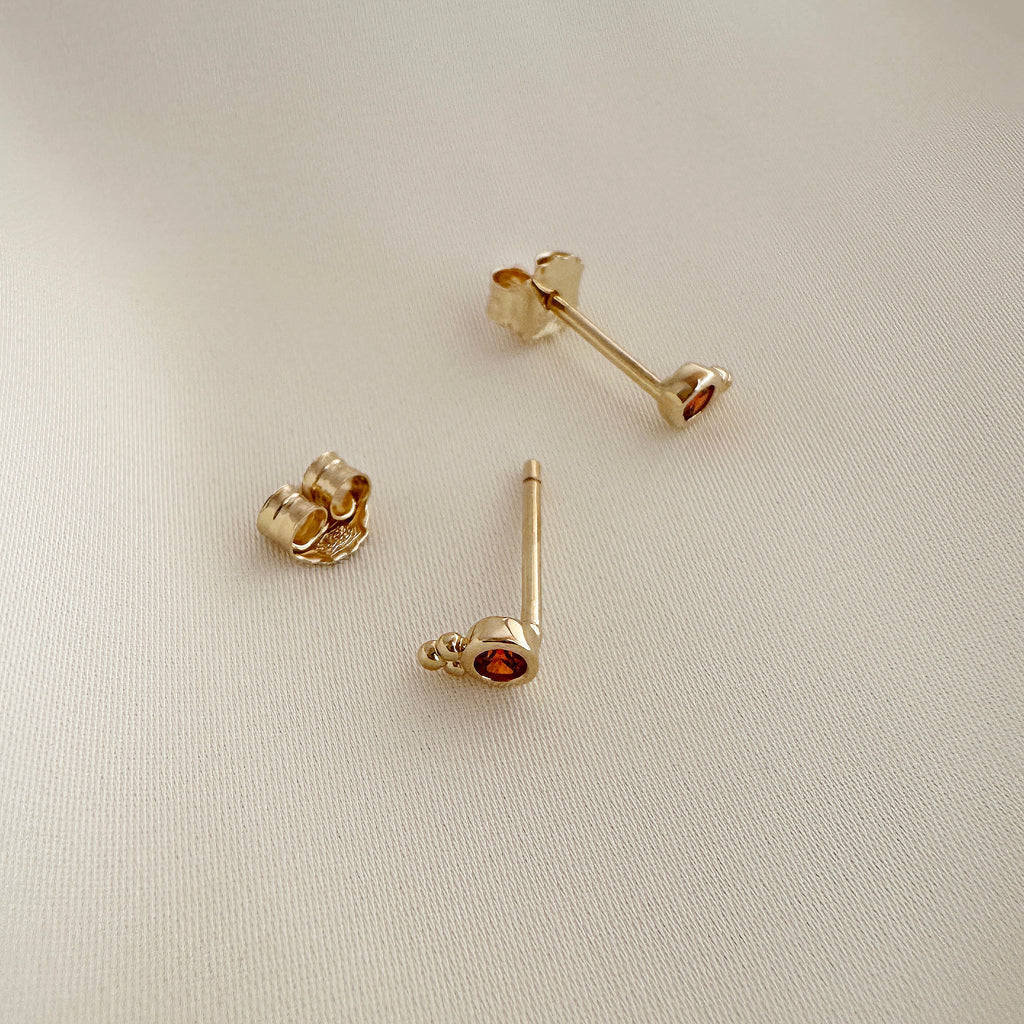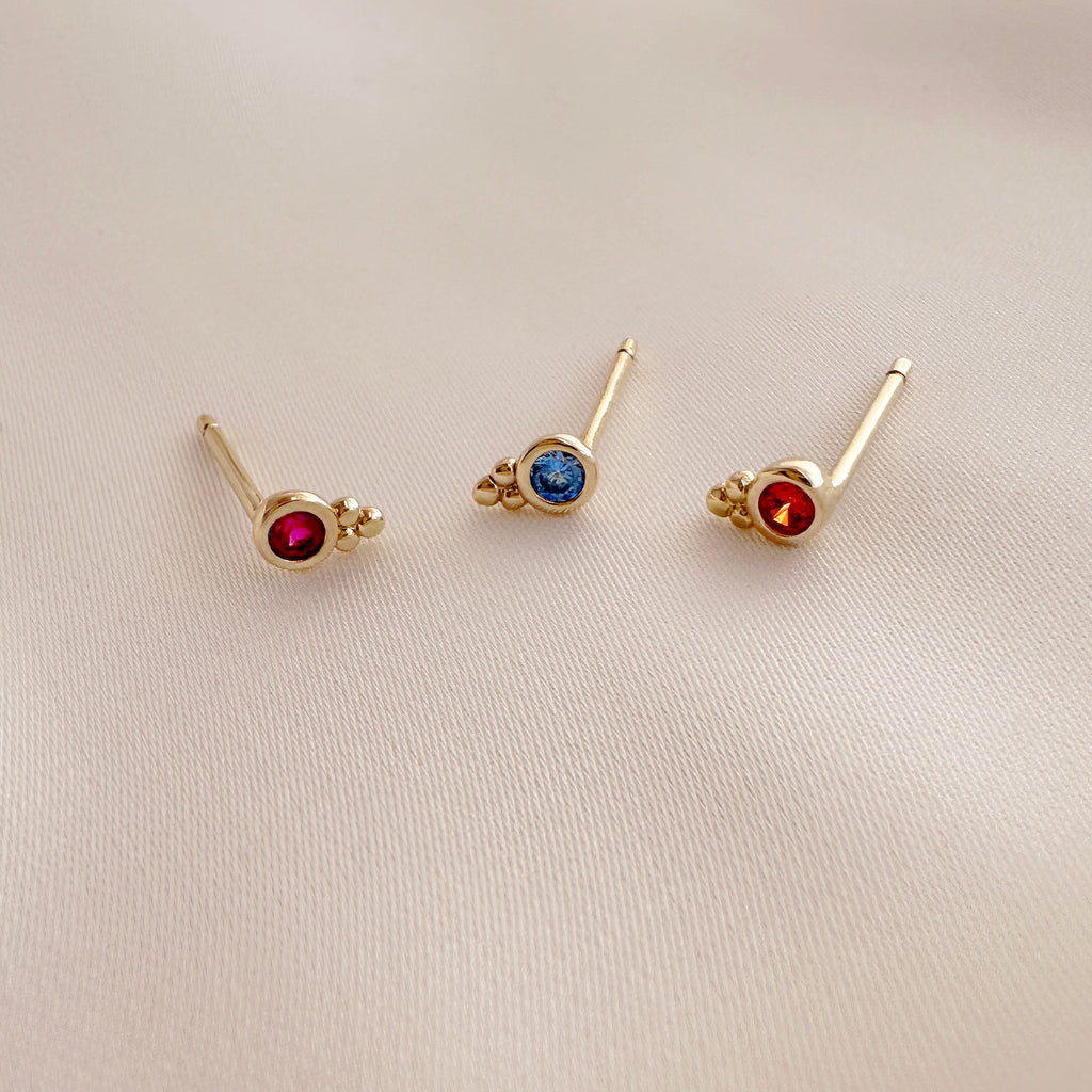 Dainty boho stud earrings with a turquoise blue zircon crystal.